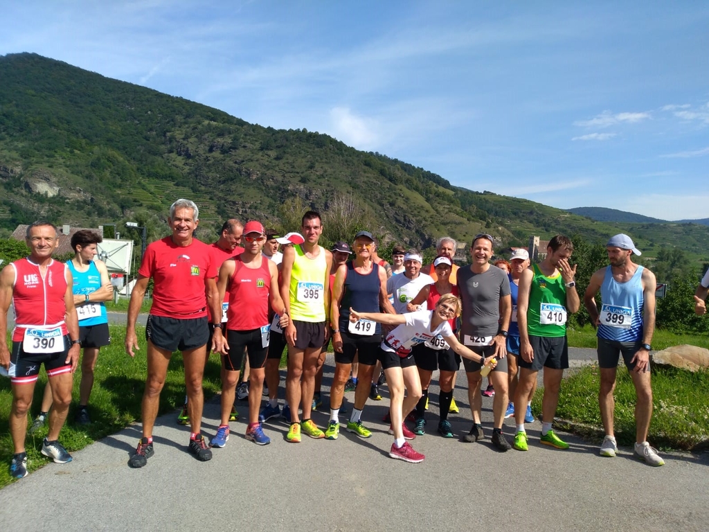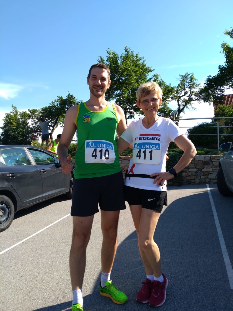 (ti) Josef und Moni waren heute für unseren Laufclub in der Wachau unterwegs, um am "Hoher Stein"-Berglauf zu starten. Neben 21 weiteren Bergfexen galt es bei sommerlichen Temperaturen, die 6,1 km mit 475 Höhenmetern bespickte Strecke, bei der es unter anderem auch über den Römersteig ging, schnellstmöglich zu absolvieren. Josef, erstmals in Mitterarnsdorf am Start, war schon etwas von der Strecke vorgewarnt und ging es daher etwas langsamer an (auch geschuldet einer leichten Oberschenkelverletzung). Immerhin gab es für ihn noch Platz 3 in der M30-Wertung. Auch Moni blieb unter der 61 Minuten-Grenze und durfte sich im Ziel mit Platz 1 in der W50 freuen.