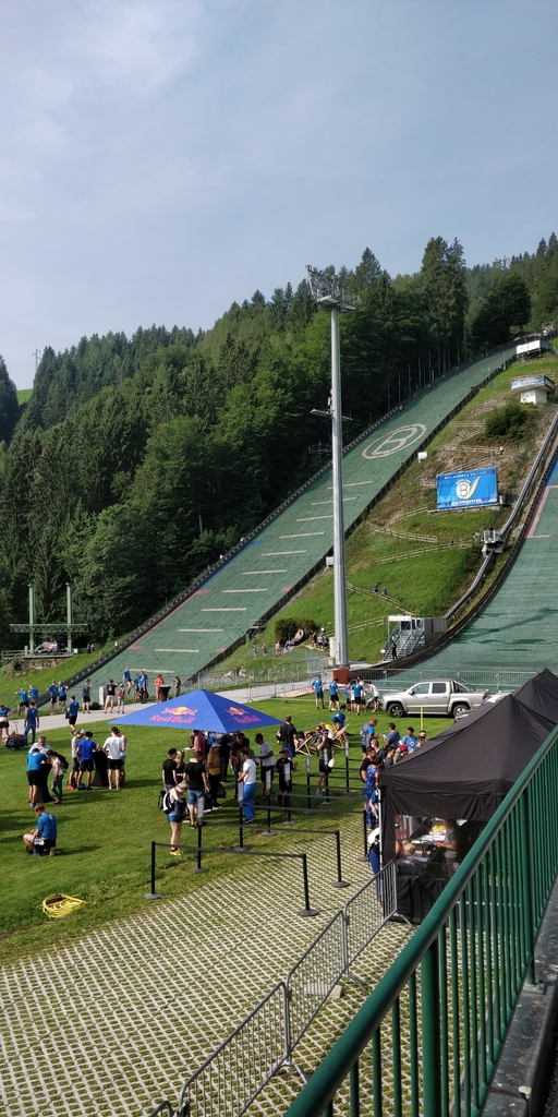 Es geht dabei nicht nur darum die Schanze schnellstmöglich zu überwinden, sondern vor allem im Vorlauf eine gute Technik zu finden und Kräfte für den weiteren Durchgang zu sparen, weshalb ich beim Schanzentisch ich mich mit einem abgesprochen habe und wir gemütlich die letzten Meter überwanden. Ab dem Halbfinale ging es dann schon eher zur Sache, jedoch habe ich mich dort vorher mit Goldi (Andreas Goldberger) abgesprochen, wie man es am besten angeht, vor allem weil's etwas nass war. Dort konnte ich dann mit einer halbwegs guten Leistung und 4:41 mich für's Finale qualifizieren. Mit 2 weiteren Stunden Pause hieß es dann Vollgas. Leider bin ich's etwas zu gemütlich angegangen und war nach rund 180m Letzter. Danach hab ich nochmals angegriffen und konnte mit einer guten Zeit von 4:33, leider dieses Mal um eine Sekunde von Goldi geschlagen, trotzdem zufrieden sein.