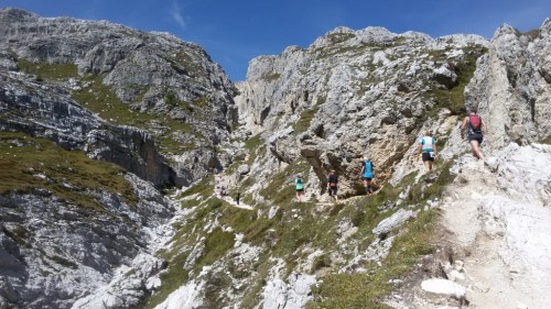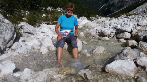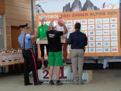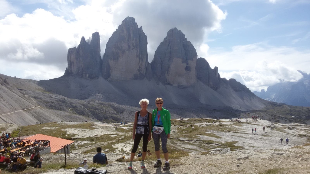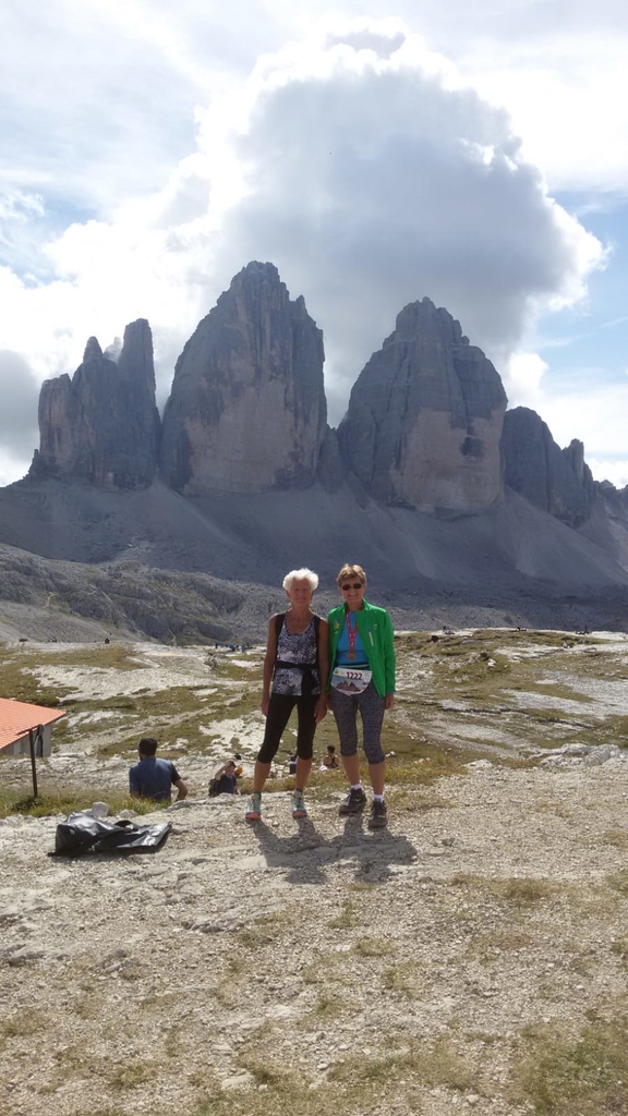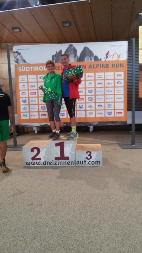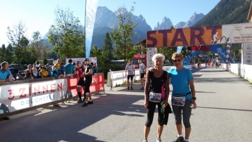 Ulrike Hoffmann und ich waren dabei. Nach dem Start in Sexten und einer Schleife durch den Ort ging es die ersten 8 Km nur leicht bergan, aber hinauf zur Zsigmondyhütte 2224m war es oft anhaltend sehr steil. Der schönste Streckenabschnitt zeigte sich zwischen Zsigmondy- und Büllelejochhütte 2528m. Hier wurde es hochalpin und der mächtige Zwölferkofel 3094m beherrschte das Bild. Oben am Joch hattte man das Schwierigste geschafft. Zunächst ging es steil bergab, dann oberhalb der Bödenseen und zuletzt wieder ansteigend zum Ziel direkt bei der Drei Zinnen Hütte 2405m. Uli kam als 2. in der W65 mit tollen 2:46 Stunden ins Ziel, ich schaffte es (bei Kreislaufbeschwerden und starken Beinkrämpfen, die mich zum Stehen zwangen) als 4. in 3:27 Stunden aber als älteste Teilnehmerin.