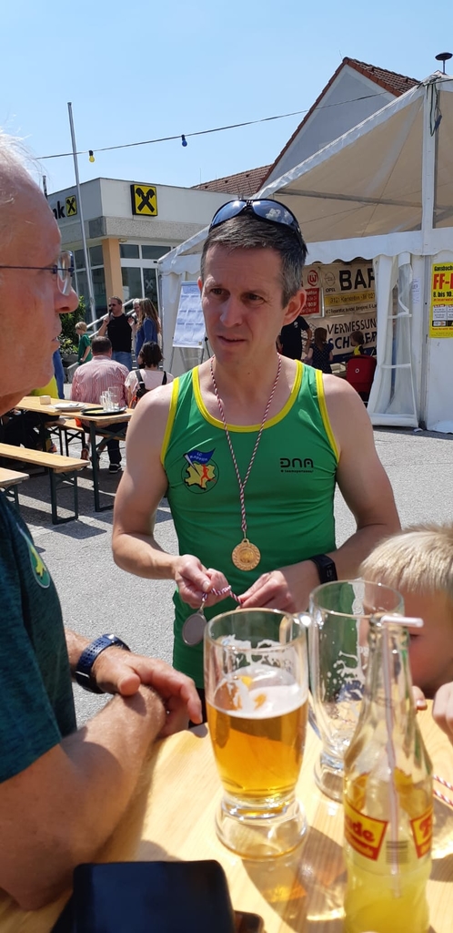 (ti) Als Titelverteidiger angetreten hat er seine Rolle wahrlich angenommen und sich abermals den Tagessieg in Karlstetten gesichert. In einer Zeit von 20:42 min für die 5,4 km gewinnt er ganz sicher vor Bernhard Plametzberger (NF St.Pölten). Beim Marktlauf war eine Runde mit unterschiedlichen Untergrund (Asphalt, Güterweg, Schotter, Wiesenboden) bei zwei kurzen knackigen Anstiegen zu absolvieren. Man musste sich seine Kräfte gut einteilen und sich nicht gleich bei den ersten beiden Kilometern bergab verbrennen. Bei den (leider nur) zwei Wertungen unter 45 bzw. über 45 erreichten wir mit Rene noch den 3. Platz sowie einen 2. Platz von Gerda. Vom LCK noch dabei waren Günther D., Peter P. sen., Jakob W. samt Mama Claudia und Tinki. Ganz stark wieder unterwegs war Jakob Wandl, der mit seinen 11. Jahren den Pokal den jüngsten Teilnehmers in Empfang nehmen durfte. Mit seiner Zeit von 28:40 min landete er im guten Mittelfeldbereich und hat somit viele Mitläufer hinter sich gelassen.
