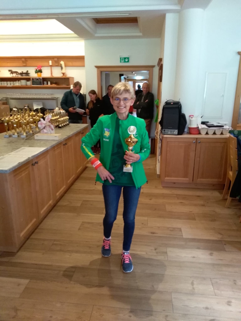 (re) Gemeinsam mit ihrem Team ( Kerstin, Josef und Günter) ging sie auf die herrliche Strecke. Dabei waren 12km bei 560hm auf sehr gut befestigten Wegen zu bewältigen. Moni konnte sich letztlich als Klassensiegerin durchsetzen.