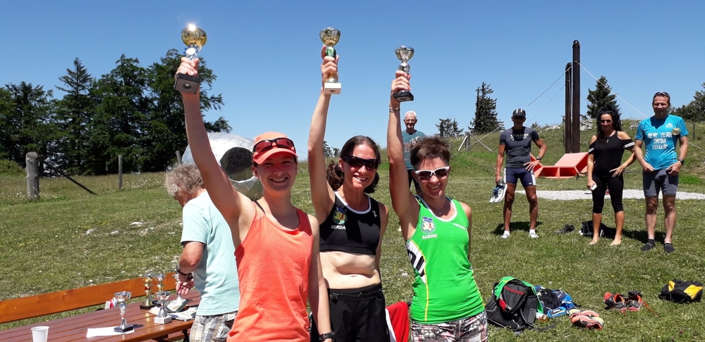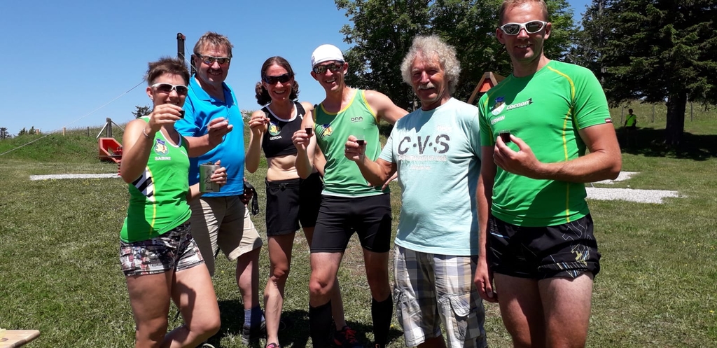 Jürgen A. meisterte die Strecke in 52:53 und wurde somit 3. in seiner Altersklasse, 4. gesamt. Erwin schaffte es in 1:07:17 und verpasste als 4. seiner Klasse das Podest. Gerda erreichte nach 1:11:51 das Ziel und gewann die Wertung ihrer Altersklasse. Sabine wurde mit einer Zeit von 1:24:59 ERSTE in der W40 und feierte somit ihren ersten Sieg. Voller Freude zückte sie den Flachmann mit der der Aufschrift "Bergfex Sabine" und gab eine Runde Zirbenschnaps aus. Ein Prost auf den ersten Sieg ... und hoffentlich viele weitere für den LCK.