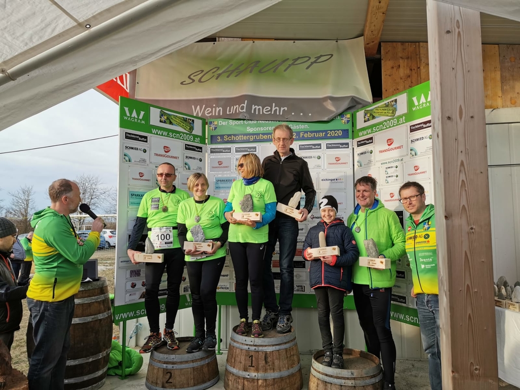 Das Wetter zeigte sich von seiner besten Seite und erwies den LäuferInnen und WalkerInnen beste Crosslaufbedingungen. Die Sonne erstrahlte die Gemüter und ließ den ein oder anderen stärkeren Windstoß in den Hintergrund rücken. Neben den üblichen AK-Wertungen wurde auch das Team mit den meisten Meldungen prämiert, und da durften wir uns mit 15 Startern über Platz 1 freuen. 12 Flaschen Wein, einen 13,6 kg schweren Pokal(-Stein) und weitere tolle Preise bekamen wir überreicht. Auch über einen Stockerlplatz durften wir uns freuen: Unser jüngster Teilnehmer, nämlich Lena Tauchner, konnte sich im NW-Bewerb über Platz 3 freuen. Sie wurde begleitet von Mama Petra (Platz 4), auch Rene war (verletzungsbedingt) "nur" im NW-Bewerb mit Heidi am Start. Beim Hauptlauf durften wir erstmals in unserer Mitte Stefan Tauchner begrüßen, der mit Platz 62 (AK 12) gleich eine tolle "Talentprobe" abgelegt hat. Mit einigen Trainingseinheiten und voller Gesundheit wird Stefan demnächst um einiges weiter vorne in den Ergebnislisten zu finden sein. Schnellster Grüner war heute Andi (5.M50), knapp dahinter auf Tagesrang 30 war Tinki im Schlepptau mit Erwin (12.AK) zu sehen. Günter, Josef und Peter P. sen rundeten mit guten Leistungen das männliche LCK-Aufgebot ab. Unsere besseren Hälften - die flotten Damen - waren knapp hinter den Podestplätzen zu finden. Schnellste war Steffi (5.W30), Barbara verpasste das Podest mit Platz 4 knapp, weiters noch mit guten Leistungen in Neustift mit dabei waren Claudia, Sabine und Moni (schon im Faschingsoutfit). War abermals eine tolle Veranstaltung bei euch - wir kommen gerne wieder nach Neustift!