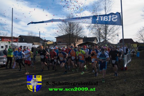 (ti - tw. scn2009) Strahlender Sonnenschein, frühlingshafte Temperaturen, nicht unwesentliche Windverhältnisse und ein neuer Teilnehmerrekord prägten den 3. Schottergrubenlauf bei unseren Lauffreunden in Neustift im Felde. Gegenüber dem letzten Jahr konnte man mit mit 134 Startern eine leichte Steigerung gegenüber dem Vorjahr verzeichnen. Passend zum Faschingssamstag erfolgte der Start um 14:30 Uhr im bunten Konfettiregen. Die (großteils Cross-) Strecke führte durch das Siedlungsgebiet zum Haleberg, der vermeintlich höchsten Erhebung von Neustift, ehe es entlang von Windschutzgürteln und Feldwegen vorbei an Schottergruben und einigen Hochständen nach 6,8 km wieder zum Ziel am Sportplatz ging.