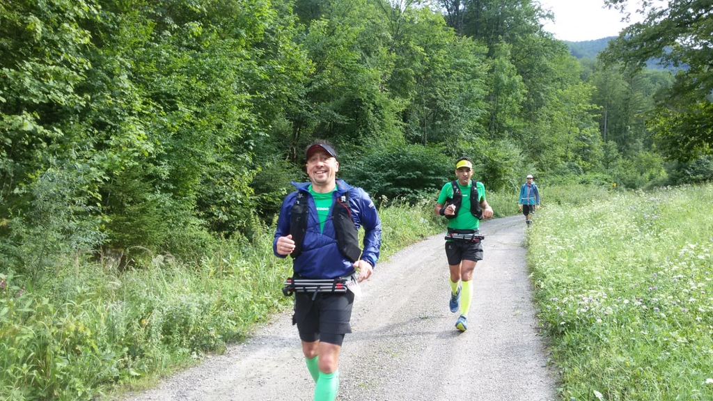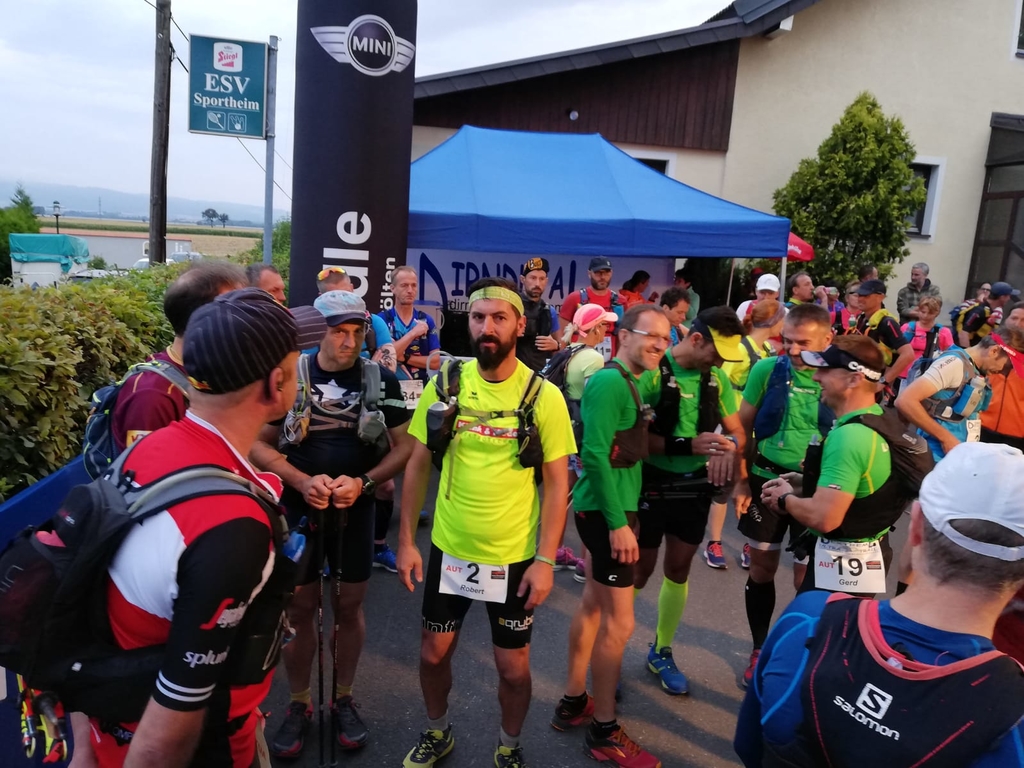 🌙 - Aufstehen um 4:00 - frühstücken- anziehen- da und dort ein bisschen Vaselin auftragen, damit nichts passiert und zum Start nach Ogra fahren. Puls noch im grünen Bereich. Dort angekommen, mal schnell den GPS Tracker holen und gedanklich auf den Tag vorbereiten. Man rechnet mit vielem vor dem Start, nicht aber, dass kurz vor dem Start Rene, Andi, Tinki und Heidi 🐕. plötzlich auftauchen und uns die ersten 10km begleiten wollen. So kann ein genialer Lauf beginnen.
