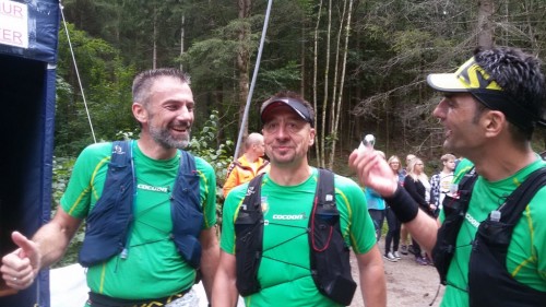 - Km35.5-CP3-9:56-Weißenbach: Auf dem Weg vom Grüntalkogel zum CP3, merken wir, dass es regnet. Geschützt durch den Wald, werden wir aber verschont nass zu werden. Markus und Peter, die schneller unterwegs waren, hatten da weniger Glück. Am CP selbst- trinken, nachfüllen