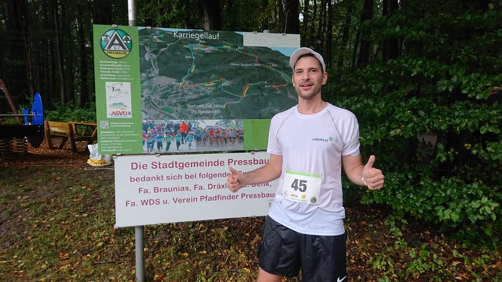 (ti) Strömender Regen beeinträchtigte den diesjährigen Geländelauf rund um den Karriegel. Mit der schon insgesamt 55. Auflage dieses Laufes ist diese Veranstaltung somit eine der ältestens Österreichs. Im Hauptbewerb nahmen insgesamt 75 Laufbegeisterte die rund 8 Kilometer rund um den Karriegel in Angriff. Dabei waren rund 140 HM zu absolvieren, bei den Bergab-Passagen war aufgrund des rutschigen Untergrunds große Vorsicht geboten. Unser Josef war ebenfalls mit von der Partie und erreichte in einer Zeit von 44:14,8 den 41. Rang (7. M30) in der Tageswertung. Bei schönem Wetter ist dieser Lauf durch die abwechslungsreiche Strecke einen Besuch wert.