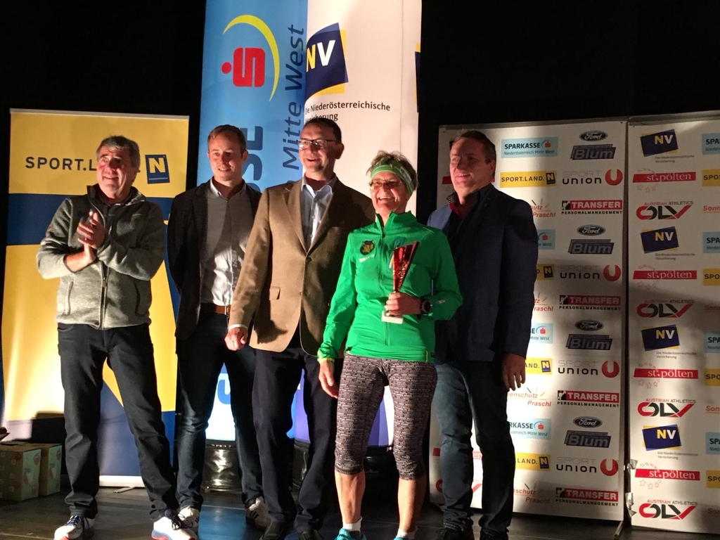 Mit weiteren sieben Athleten gingen wir dann an den Start des 10km Bewerbes. Dieser war gleichzeitig die NÖ Meisterschaft über diese Distanz. Als dritt schnellster Mann gesamt und 2. seiner Klasse lief Jürgen sehr stark über die Ziellinie. Poidl geschwächt von der vielen herbstlichen Schnittarbeit blieb als 4. seiner Klasse leider wieder hinter seinen momentanen Lieblingsgegner Martin. Auch wieder auf der Piste war Matthias und schaffte den 13. Klassenrang. Wie bereits erwähnt, nahm Josef nach dem 5er auch noch am 10er teil und wurde dabei 9.. Gerda, nach ihrer Verletzungspause erstmals wieder bei einem Bewerb am Start, wurde gleich wieder 4. Dame und auch ebenso in ihrer Klasse. Eine sehr starke Leistung zeigte Rookie Barbara und schaffte dadurch auch den Sieg in ihrer Klasse. Ebenso wurde Bernadette Schnellste ihrer Klasse.