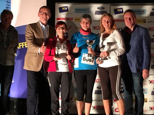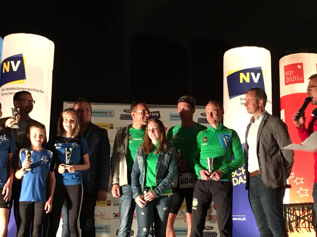 (re) Mit neun Athleten gingen wir in den Bewerb über die 5km. Dabei galt es 4 Runden in der St.Pöltner Innenstadt zu laufen. Bis in Runde 3 präsentierte sich Sabine P. mit extrem hohem Tempo, dem sie in der letzten Runde etwas Tribut zollen musste. Letztlich schaffte Sabine den 2. Rang unter allen Damen und siegte in ihrer Klasse. Andi, Tinki und Rene lieferten sich ein spannendes Match auf der Strecke. Andi hatte letztlich das bessere Ende auf seiner Seite und ging 2 Sekunden vor Rene und 6 Sekunden vor Tinki als 6. in der Klasse durchs Ziel. Rene wurde 7. und Tinki 8. Erwin H. lautstark angefeuert von seiner noch verletzten Sabine am Streckenrand wurde 8. in seiner Klasse. Rund eine Minute später lief unser Vielläufer Josef als 9. der Klasse ins Ziel. Er ging natürlich auch noch an den Start des später gestarteten 10km Bewerbes. Rookie Karin P. schaffte den tollen 2. Rang in ihrer Klasse und wurde gesamt sechst schnellste Dame. Peter sen. schaffte den tollen 3. Rang in seiner Klasse. Sehr zufrieden zeigte sich Rookie Heidi mit einer starken Leistung als 13. ihrer Klasse.