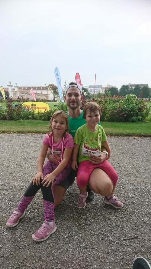 (ti) Angereist mit seinen beiden Kids war Josef nach dem etwas schmerzlichen vortägigen Veltlinerlauf wieder guten Dinge beim heutigen Augartenlauf. Zu Beginn waren