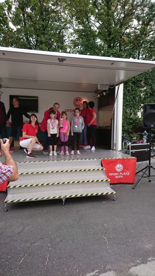 die Kids über 1km auf feuchten Kieswegen dran, Sabrina hat heute eine neue PB-Zeit über 1 km geschafft mit 4:49min und den 1.Platz WU8 erreicht, Sarah ist ebenfalls tapfer fast den ganzen km durchgelaufen. Danach war Josef bei den 5 km am Start. Die Strecke führt im Barockgarten über zwei 2,5 km Runden auf schattigen Schotter u. Bitumen-Alleen. Trotz einigen Problemen mit der Zeitnehmung gab es dann am späten Nachmittag eine Ergebnisliste, bei der Josef von insgesamt 174 Startern am 38. Tagesrang aufscheint (12.M30). Herzliche Gratulation der gesamten 'Skarek-family'!