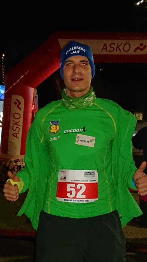 (ti) Pünktlich zu den Glocken der Pummerin und zu den ersten Takten des Donauwalzers wurde um Mitternacht in Wien-Donaupark die erste Laufveranstaltung 2020 gestartet. Dabei waren zwei Runden á 2,7km zu bewältigen, die Strecke war durchgehend von Straßenlaternen beleuchtet. Wieder mal war Josef S. war zu später/früher Stunde unterwegs, um Punkte für die neu gestartete Vereinsmeisterschaft zu sammeln. Diesmal erreichte er von 132 Startern in einer Zeit von 24:27 min. den tollen 20. Platz.