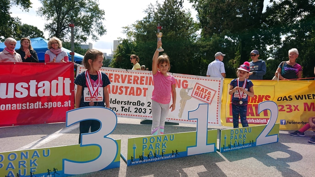 (ti) Mit dem heutigen Donauparklauf bestritt unser Vielstarter Josef seinen 70. Wettkampf für unseren LCK! Er ist seit März bei uns dabei und hat diese unglaubliche Anzahl an Bewerben innerhalb von etwas mehr als 6 Monaten bestritten. In dieser Zeit legte er 416,9 Wettkampfkilometer zurück und ist somit mit 855,9 Punkten auch souveräner Spitzenreiter in der Vereinsmeisterschaft. Wie ist es ihm heute ergangen, wo er gemeinsam mit seinen beiden Kids auf der Laufpiste war? Von insgesamt 80 Startern erreichte er Platz 7 in der M30-Wertung (Tagesrang 39.). Danach sind seine Töchter beim Kinderlauf über 800 m gelaufen, wo Sabrina mal wieder den 1.Platz in der WU8 erreicht hat. Aber auch Sarah war wieder sehr flott unterwegs und war nach knapp über 5 min. ebenfalls über der Ziellinie. Herzliche Gratulation!